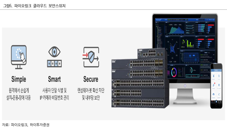 ◇일본 클라우드 관리형 보안스위치 매출 성장성 가속화= 일본은 2020년 도쿄 올림픽을 앞두고 기존 시설물과 제어시스템 재정비를 추진할 뿐만 아니라, 전 산업에 걸쳐 정보보안 강화 정책을 펼치고 있다. 또한 일본은 남북으로 긴 섬나라다 보니 출장 업무에 시간이 많이 소요된다. 높은 인건비와 교통비로 관리비용 부담도 크기 때문에 중소규모 기업에서는 네트워크와 보안 문제를 방치하는 경우가 많다. 이에 따라 인터넷 공유기, PC, 스마트기기 등 불특정 다수장비가 통제 없이 내부망에 연결되는 상황이다. 보안문제를 해결하기 위한 솔루션이 절실하게 필요한 상황이다. 이러한 환경하에서 파이오링크 클라우드 관리형 보안스위치의 경우 값비싼 보안장비를 추가로 구매하지 않더라도 네트워크 스위치만으로 보안관제와 보안서비스를 받을 수 있을 뿐만 아니라 스위치에 전원과 인터넷 포트만 연결해주면 설치부터 장애처리 등 모든 관리를 원격으로 할 수 있기 때문에 엔지니어링 출장이 불필요하다.