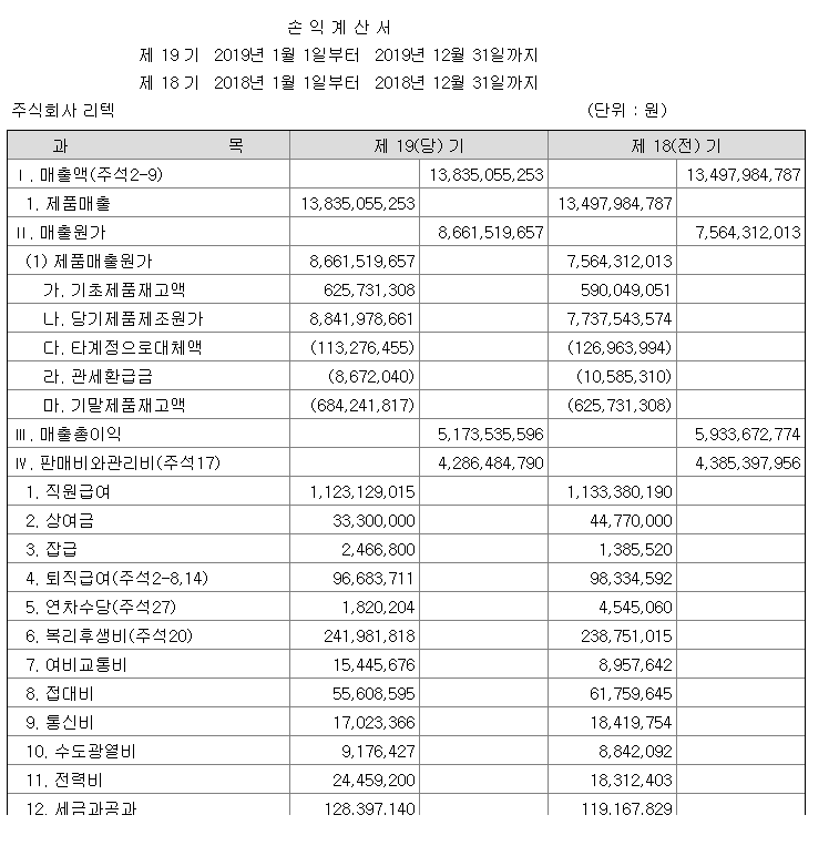 리텍의 감사보고서를 들여다봤습니다.