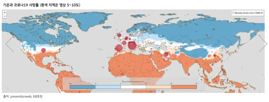 SK증권에 따르면 첫째, 여름의 더위와 습도입니다. 중국의 100대 도시 연구나 MIT 보고서에 따르면, 온도와 습도가 코로나19의 확산속도를 늦추는 효과가 있는 것으로 보고됩니다. 둘째, 치료제입니다. 의학적으론 치료제가 아니라 백신이중요한게 맞습니다. 하지만 경제 활동 재개를 위해 ‘치료제’가 지렛대로 쓰일조짐이 보이고 있습니다. 벌써부터 치료제를둘러싼 FDA (정부)와 의학계의 대립이 첨예합니다.