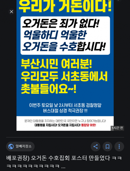 떠오르는 것이 있습니다. 검찰청 앞 집회와 우리가 거돈이다.