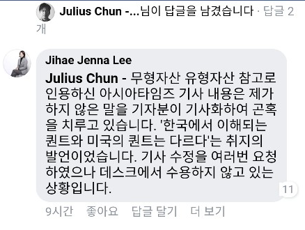 천 대표가 공유한 기사는 하지 않은 말을 기사화해 곤혹을 치루고 있다고 말했습니다. 기사 수정을 여러 번 요청했으나 데스크에서 수용하지 않았다고 말했습니다.