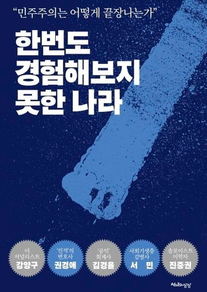 ‘한번도 경험해보지 못한 나라’는 진중권 전 동양대 교수를 비롯해 서민 단국대 교수, 참여연대 출신 김경율 회계사, 민변 출신 권경애 변호사 강양구 TBS 과학전문 기자 등 진보인사 5명의 대담을 엮은 책이라고 합니다.
