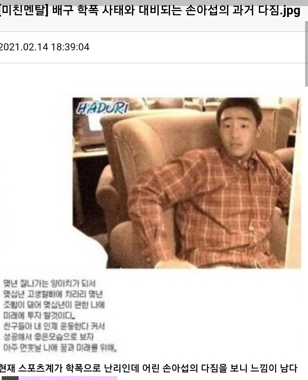 이러한 학폭에서 대비되는 선수가 있어 소개하고자 합니다. 롯데 자이언츠 소속 손아섭 선수입니다. 부산에서 태어난 손아섭 선수는 중학교 시절인가요? 하두리를 통해서 이렇게 고백했습니다.
