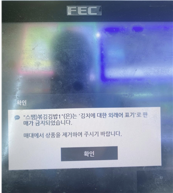 김치를 파오차이로 표기한 스팸볶김밥을 긴급 폐기하라는 지령입니다.