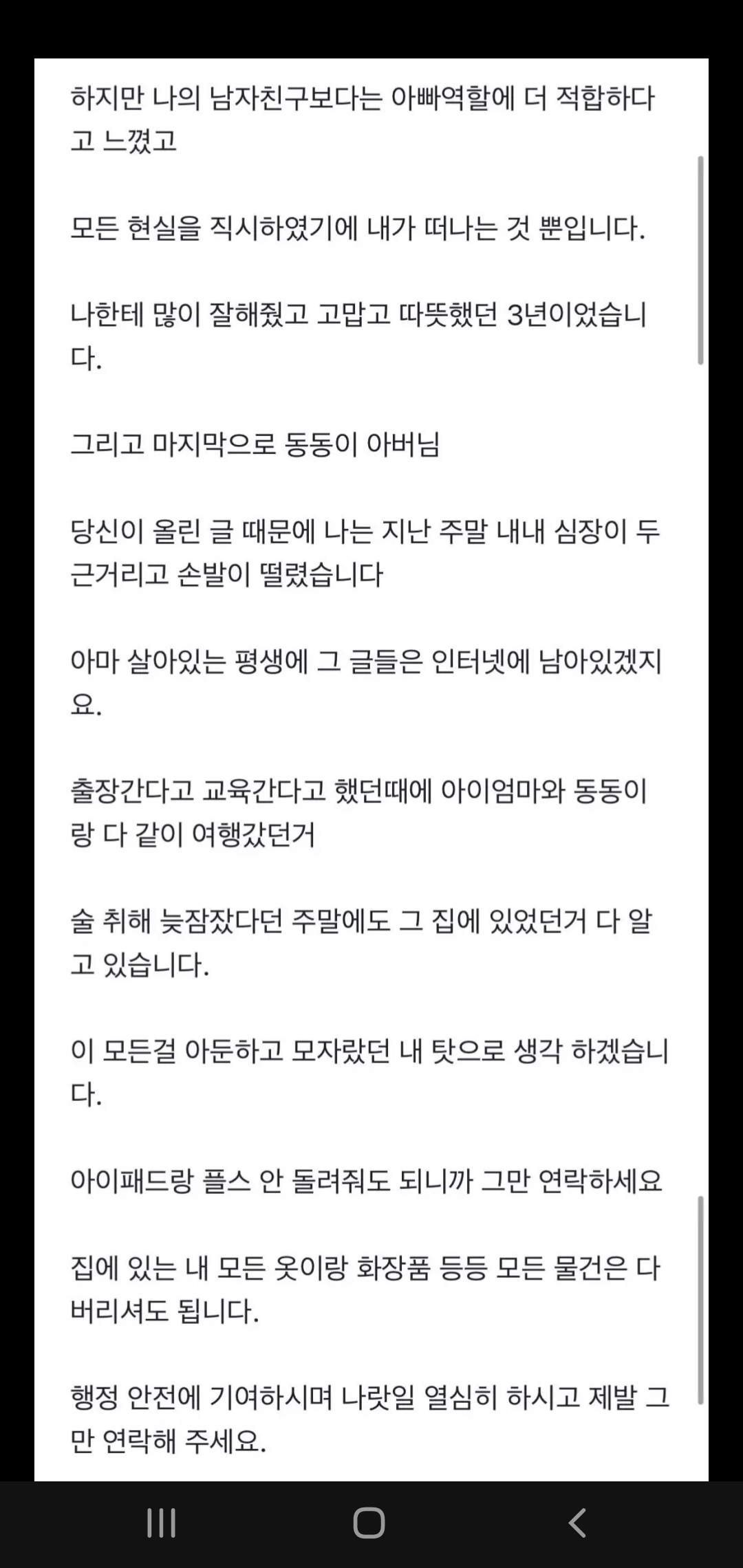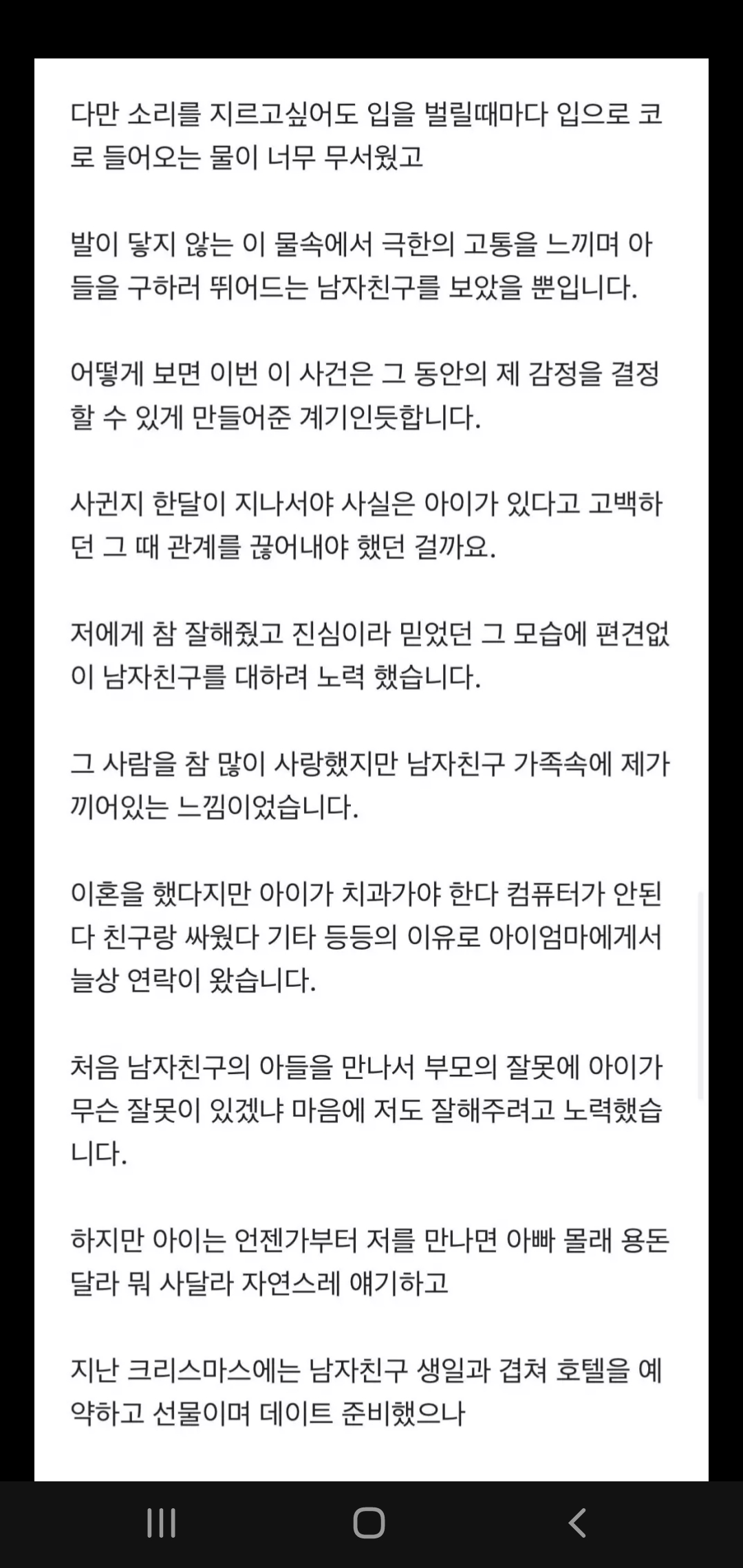 그리고 남자친구는 전 처와의 관계를 완전히 끊어내지 못하고 아들을 연결고리로 지속적으로 만나왔었습니다.