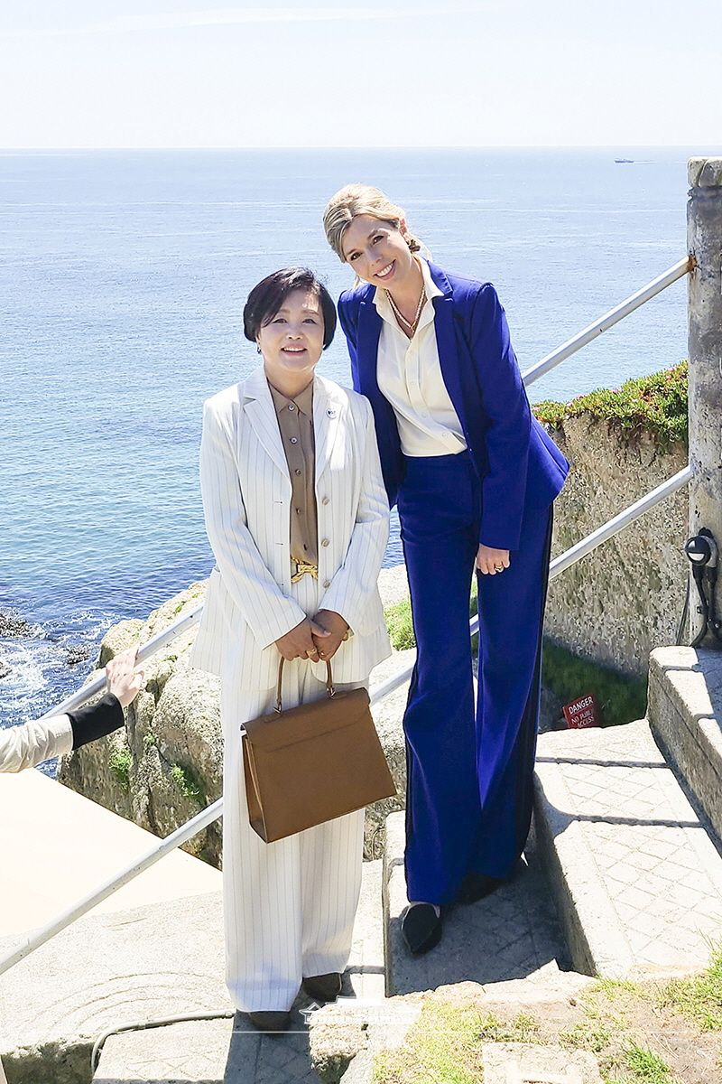 청와대는 김정숙 여사, G7 정상회의 배우자 프로그램 참석 제하의 사진을 12일 올렸습니다.
