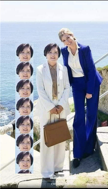 이 사진은 김정숙 여사의 몸 비율을 가늠할 수 있는 사진입니다. 신발을 제외하더라도 7.2 등분이 가능한 완벽한 서구적 비율입니다.