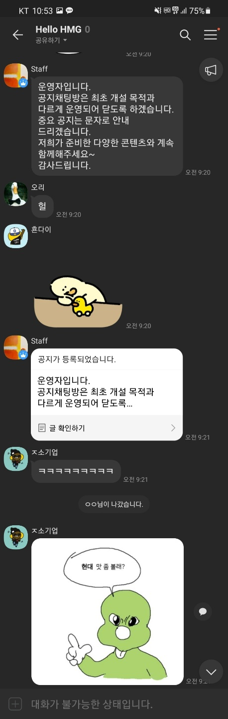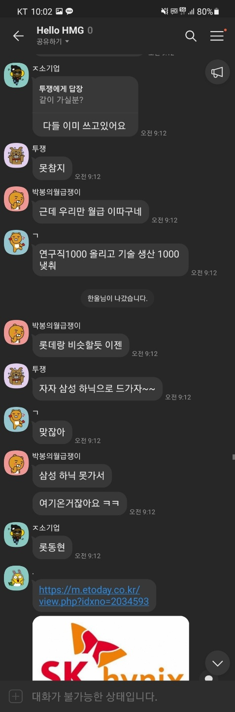 어떤 대응도 없이 비겁하게 채팅방만 폐쇄했네요. 불만을 제기한 신입사원을 오프라인에서 색출하려는 작업을 진행한 것은 아닐까 우려됩니다.