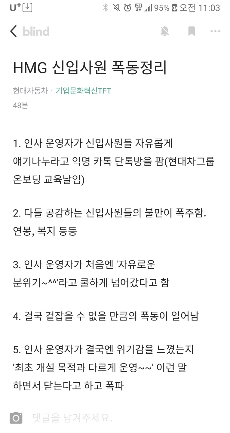 위 현대자동차그룹 신입사원의 오픈채팅방 사태도 그 연장선상이지요.