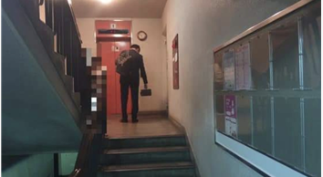 생일케이크를 들고 집으로 가던 조국 전 법무부 장관의 뒷모습과 명확히 일치하는 모습입니다.