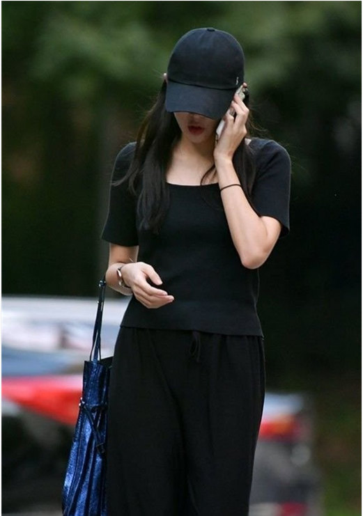 위 사진은 연예매체 더팩트가 촬영한 조민씨의 모습입니다.