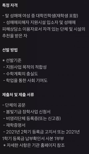 성범죄 피해 여성이 아닙니다. 성매매 출신 여성을 위한 장학금입니다.