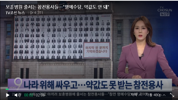 "참전 용사비가 아니라 참전 약값이다 이겁니다. 나라를 위해 목숨을 바쳤는데, 병장 월급만큼은 줘야되지 않느냐"
