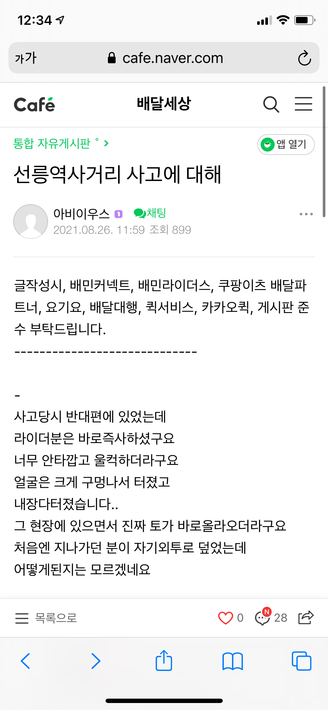 사건 소식을 전하는 건 매번 너무나 안타깝습니다. 돌아가신 라이더분의 명복을 빕니다.