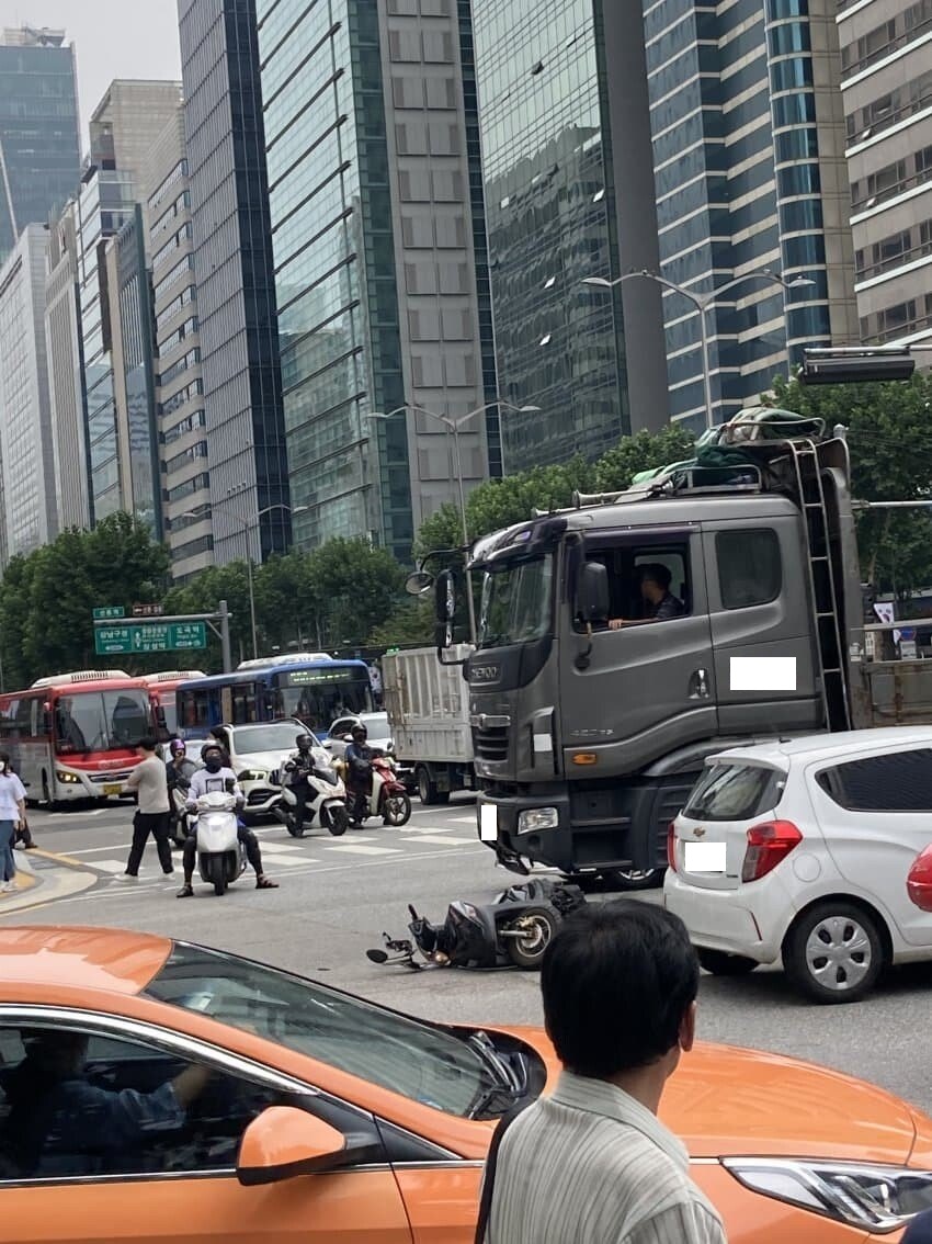 오늘 26일 오전 서울 선릉역사거리에서 교통사고가 발생해 라이더 분이 그 자리에서 숨진 것으로 알려졌습니다.