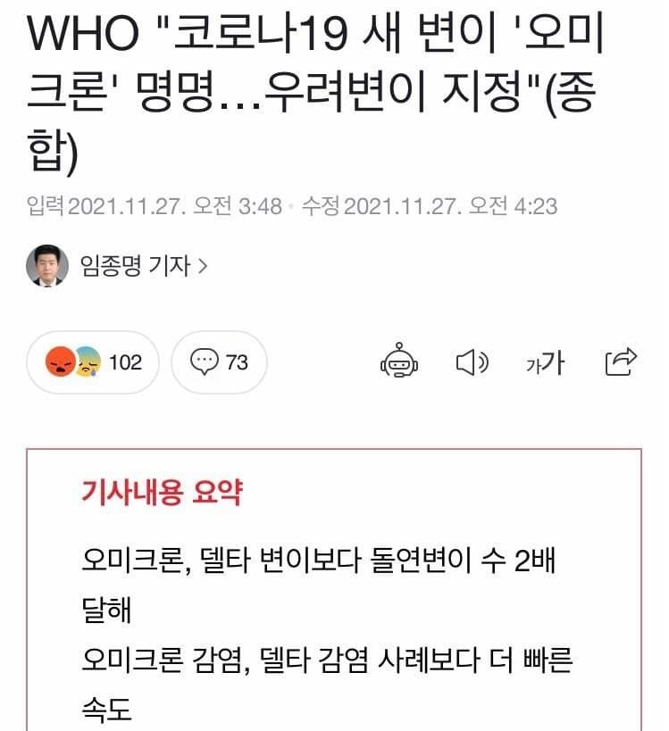 우리나라를 포함한 전 세계가 오미크론 변이 공포에 휩싸였습니다. 감염 속도도 델타 변이보다 빠르고 사망자 수, 위중증 환자수도 급증할 것이란 예상 때문입니다.