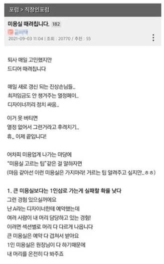 미용실 퇴사자가 알려주는 미용실 고르는 법이 인터넷에서 화제입니다.