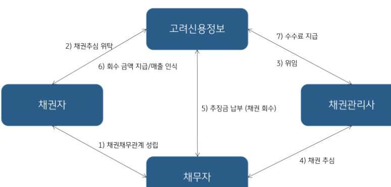고려신용정보를 이해하기 위해선 채권추심산어비 무엇인지 파악하는 것이 중요합니다. KB증권에 따르면 채권추심업이란 ‘부실채권에 대한 효율적 회수 및 관리’를 통해 채권자의 유동성 확보와 채무자의 신용회복을 촉진하는 업무라고 합니다.