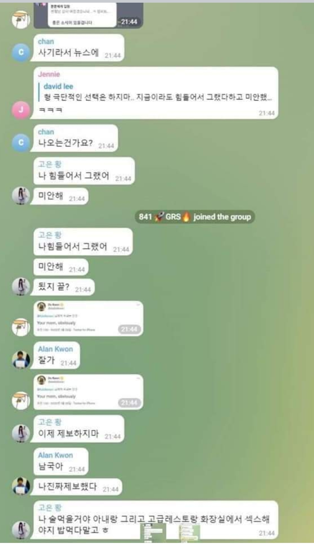 발단은 루나 코인 단체카톡방이라고 합니다.