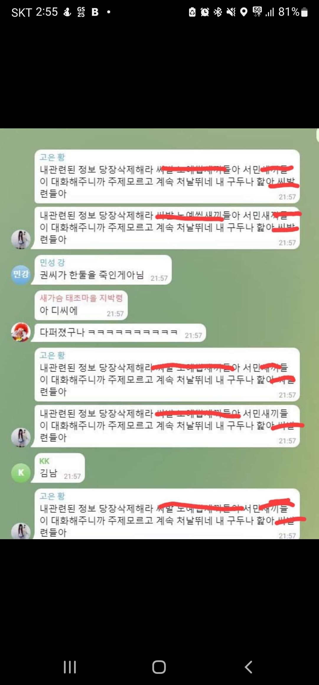 2.코인 텔레그램에서 어떤 여성이 이상한 소리 하는데 멍청하게 자기 전화번호 안가리고 욕함.