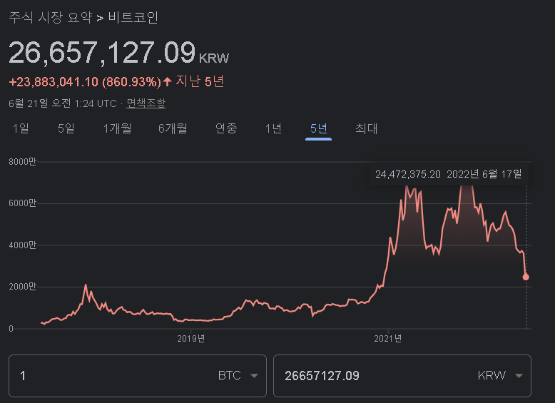 한 때 8000만원까지 치솟았던 비트코인이 4분의 1토막에 가깝게 폭락하고 있습니다. 알트코인도 아닌, 블록체인 기반 가상화폐 중 가장 거래량이 많고 공신력있는 비트코인까지 폭락하면서 폭락 배경에 대해서 관심이 높은 상황입니다.