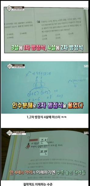 3살에 1차방정식, 4살에 2차 방정식을 풀어냈습니다. IQ는 164로 측정이 됐는데요... 상위 0.00001%에 해당하는 수치라고 해 화제를 더욱 모은 바 있습니다.