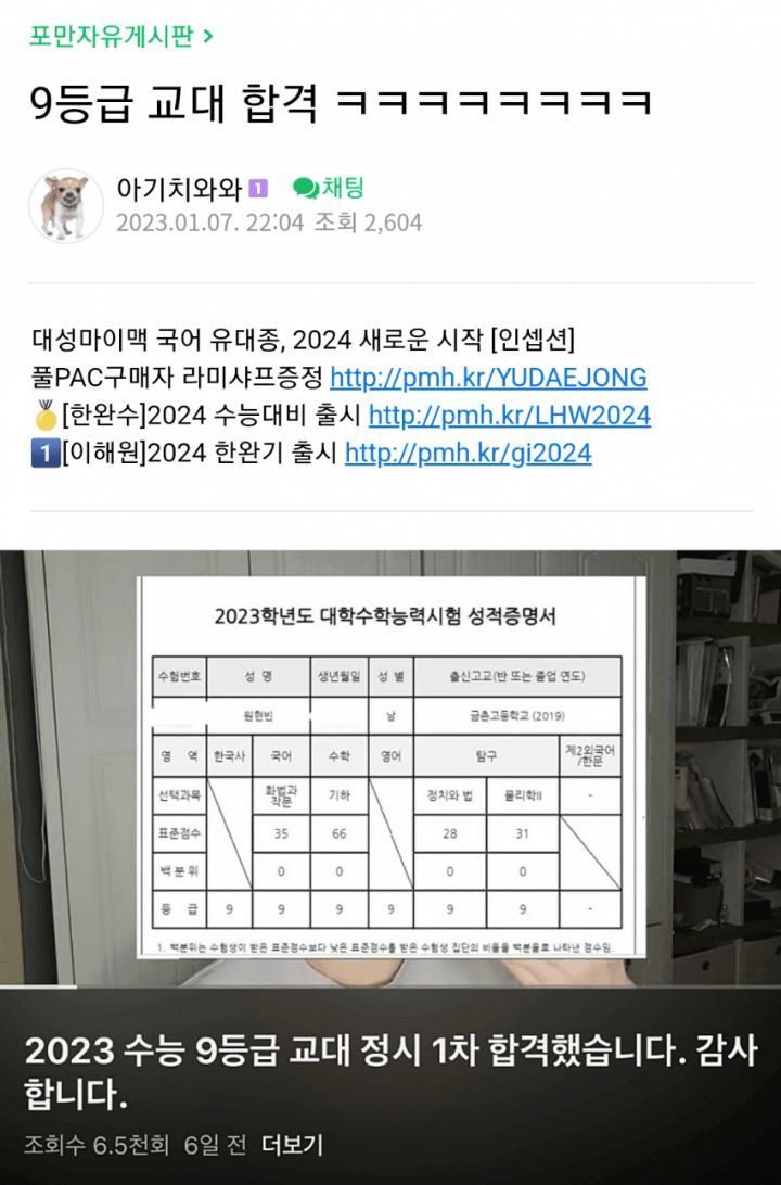| 9등급 교대 이어, 수능 5등급 서울대 공대 입학 '초읽기' (0) | 2023.01.10 |