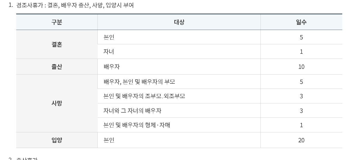 인사혁신처에서 공개한 공무원 휴가제도 원본입니다. 외조부모의 사망은 3일의 특별휴가를 쓸 수 있도록 규정하고 있습니다.