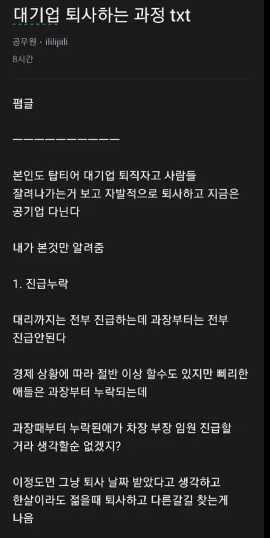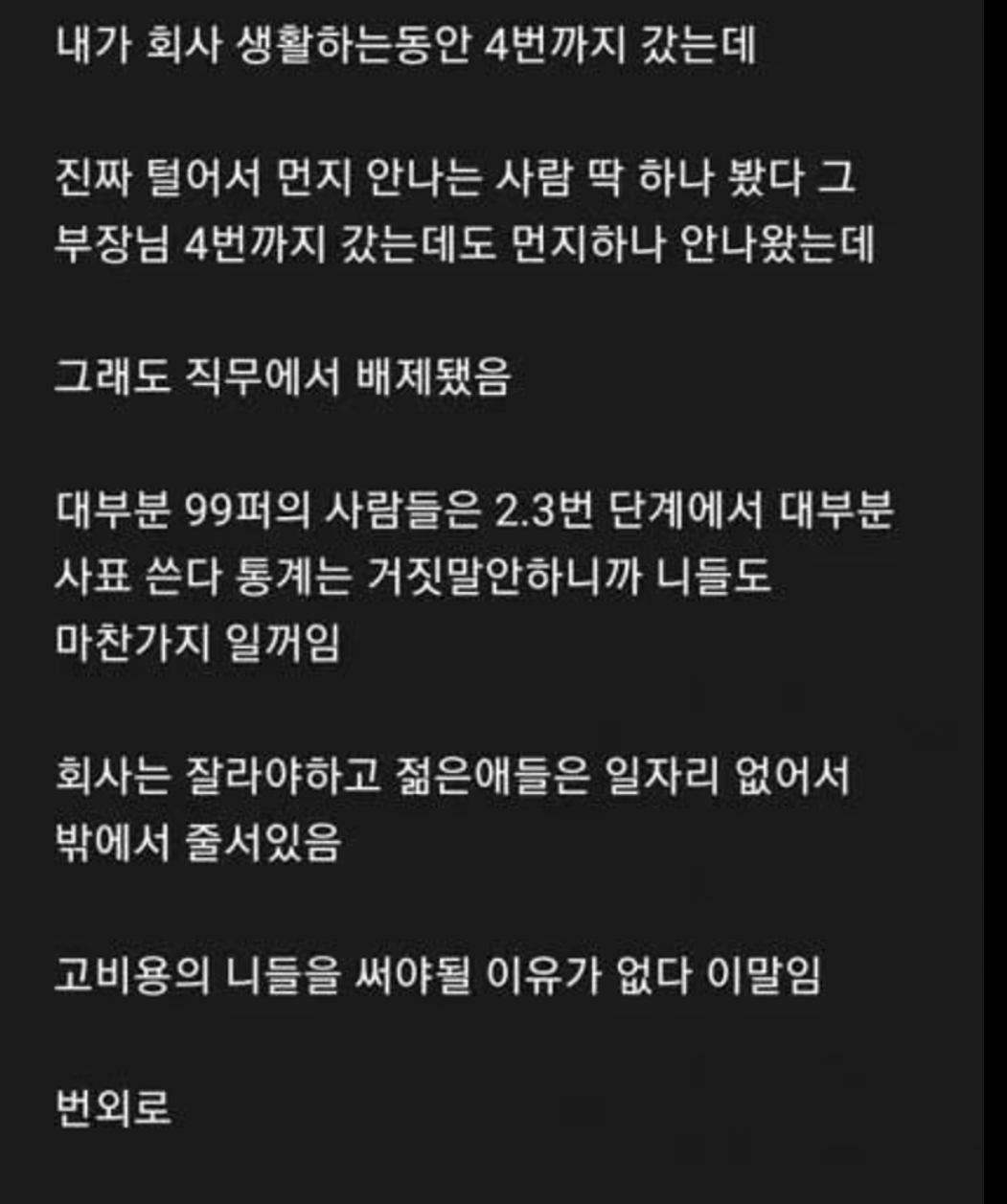 블라인드에 대기업 현직자로 추정되는 인물이 직원을 자르는 과정을 구체적으로 기술해 주목됩니다.