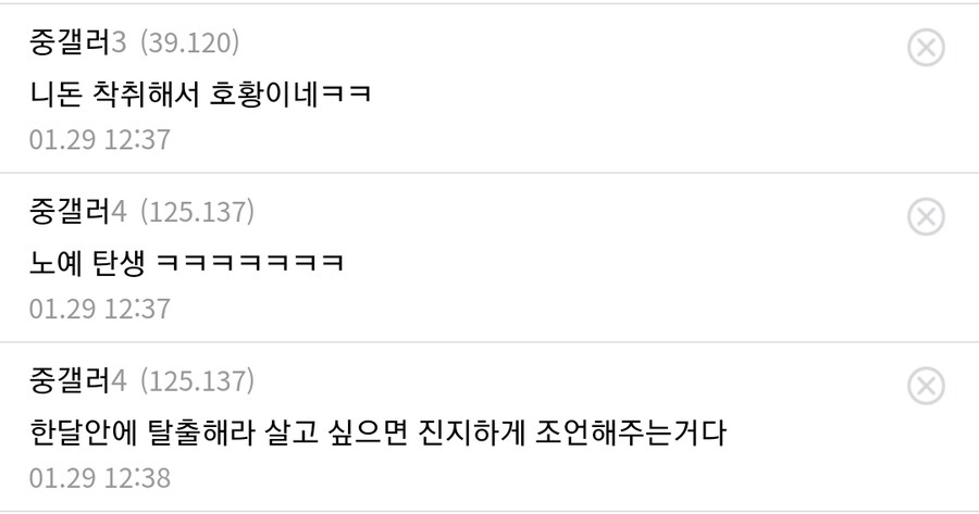 갤러리 회원들은 한 달안에 탈출하라는 피드백을 줬습니다.