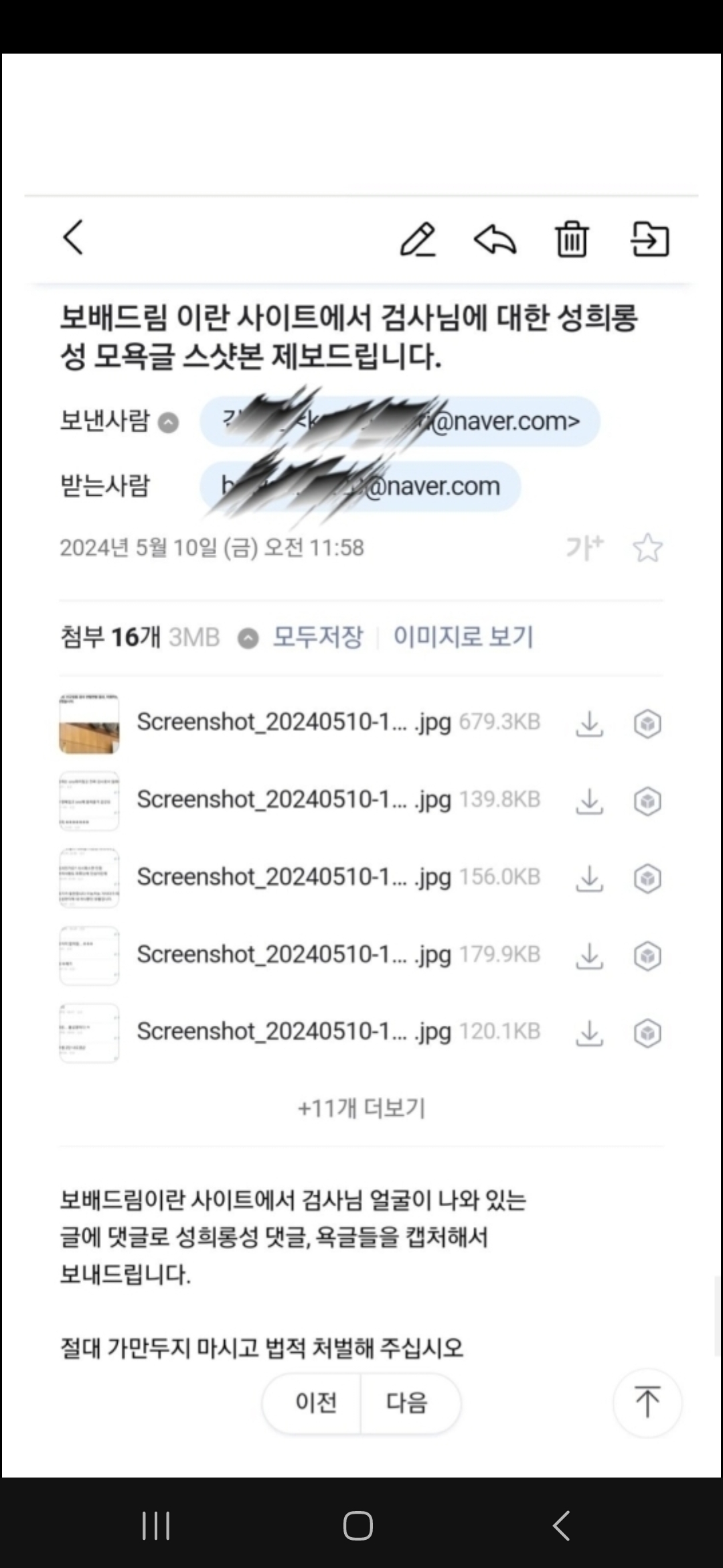 엠팍회원은 19일 김민지 검사에게 메일을 보내 직접 이 사실을 알리고 신고를 했습니다.