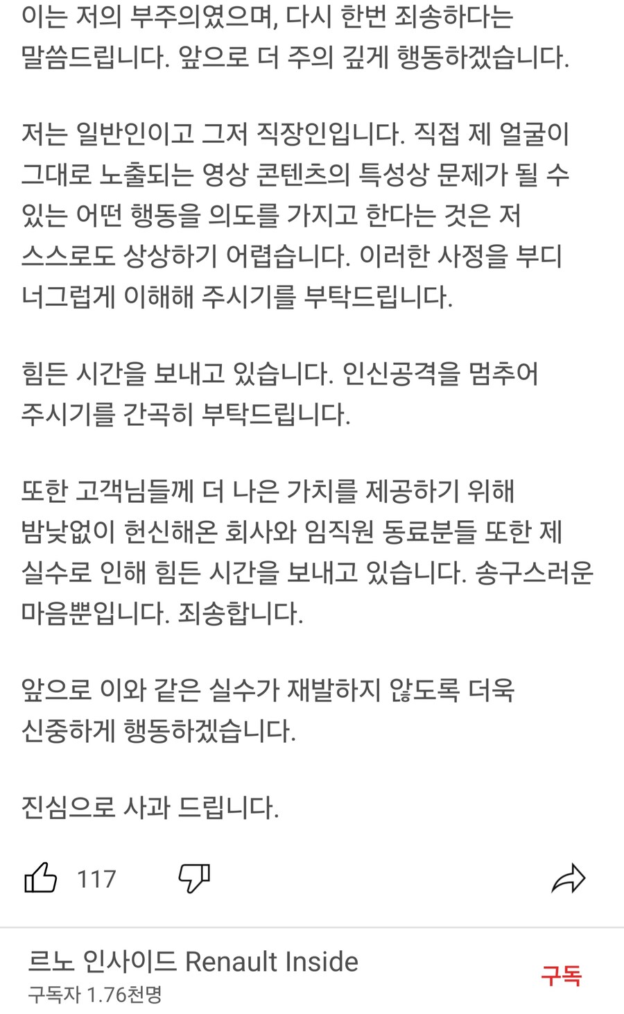 르노코리아는 사고 이후 사과문을 올리긴 했지만 논란은 가시지않고 있습니다. 피해는 회사 전체로 튀고 있습니다.