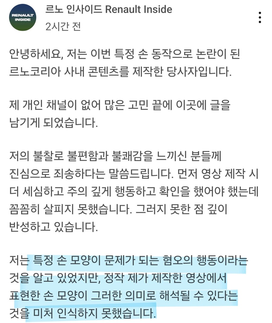 메갈리아 소추 손가락, 남성혐오 손가락, 남혐 집게 손모양 사태가 르노코리아에서도 발생했습니다.